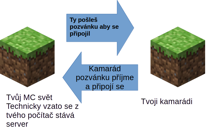• Když hraješ Minecraft ve svém světě a pozveš svého kamaráda.